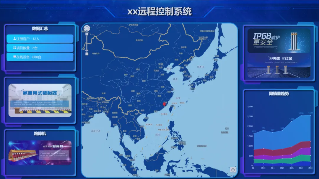 各個項目通過地圖進(jìn)行分布顯示,可根據(jù)當(dāng)前用戶權(quán)限進(jìn)入對應(yīng)的設(shè)備監(jiān)控畫面;