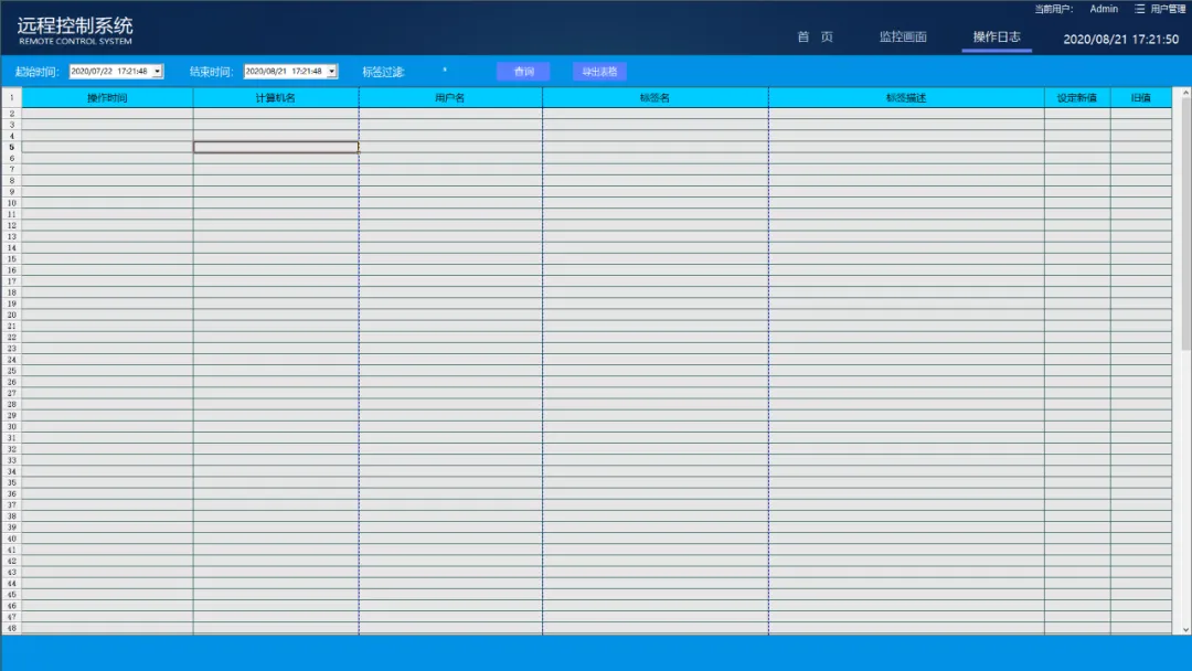當(dāng)系統(tǒng)中有人對相關(guān)設(shè)備等進(jìn)行了操作,系統(tǒng)都會記錄相關(guān)操作計算機(jī)的操作事件記,錄記錄的內(nèi)容包括 :操作時間、計算機(jī)名、用戶名、標(biāo)簽點(diǎn)名、標(biāo)簽點(diǎn)描述、設(shè)定新值、舊值和設(shè)置結(jié)果等;用戶可根據(jù)相關(guān)設(shè)定條件(如時間,具體標(biāo)簽等)對事件記錄進(jìn)行查詢,操作日志可設(shè)置起始和終止時間,可對標(biāo)簽名進(jìn)行過濾,可將查詢結(jié)果導(dǎo)出表格,方便用戶進(jìn)行事件追溯。