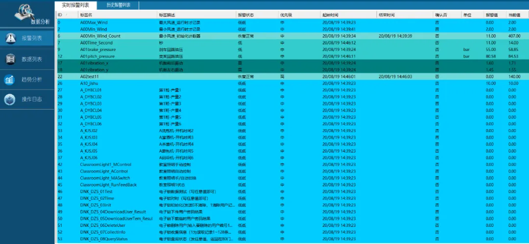 當(dāng)系統(tǒng)中任何節(jié)點(diǎn)出現(xiàn)故障或異常,現(xiàn)場升降柱的相關(guān)狀態(tài)、信號、參數(shù)出現(xiàn)異常、故障時,系統(tǒng)自動給出各種報警提示,如預(yù)設(shè)的語音報警、報警簡報窗口顯示、報警總表顯示、報警操作、報警畫面、圖元變色、報警報表管理等。 系統(tǒng)產(chǎn)生的報警信息保存,包括告警時間、告警等級、告警類別、告警描述、告警狀態(tài)等。同時可以按相關(guān)屬性對其進(jìn)行操作、確認(rèn)、過濾等。