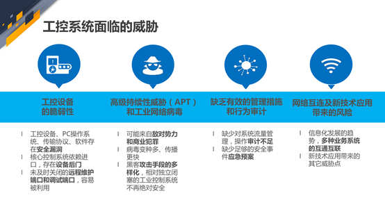 演講就當前工控系統(tǒng)安全中面臨的威脅及工控安全的特殊性進行了闡述,指出當前工控設備的脆弱性,來自多方面的安全威脅,工控系統(tǒng)缺乏有效的管理措施以及新技術(shù)應用帶來新的風險。